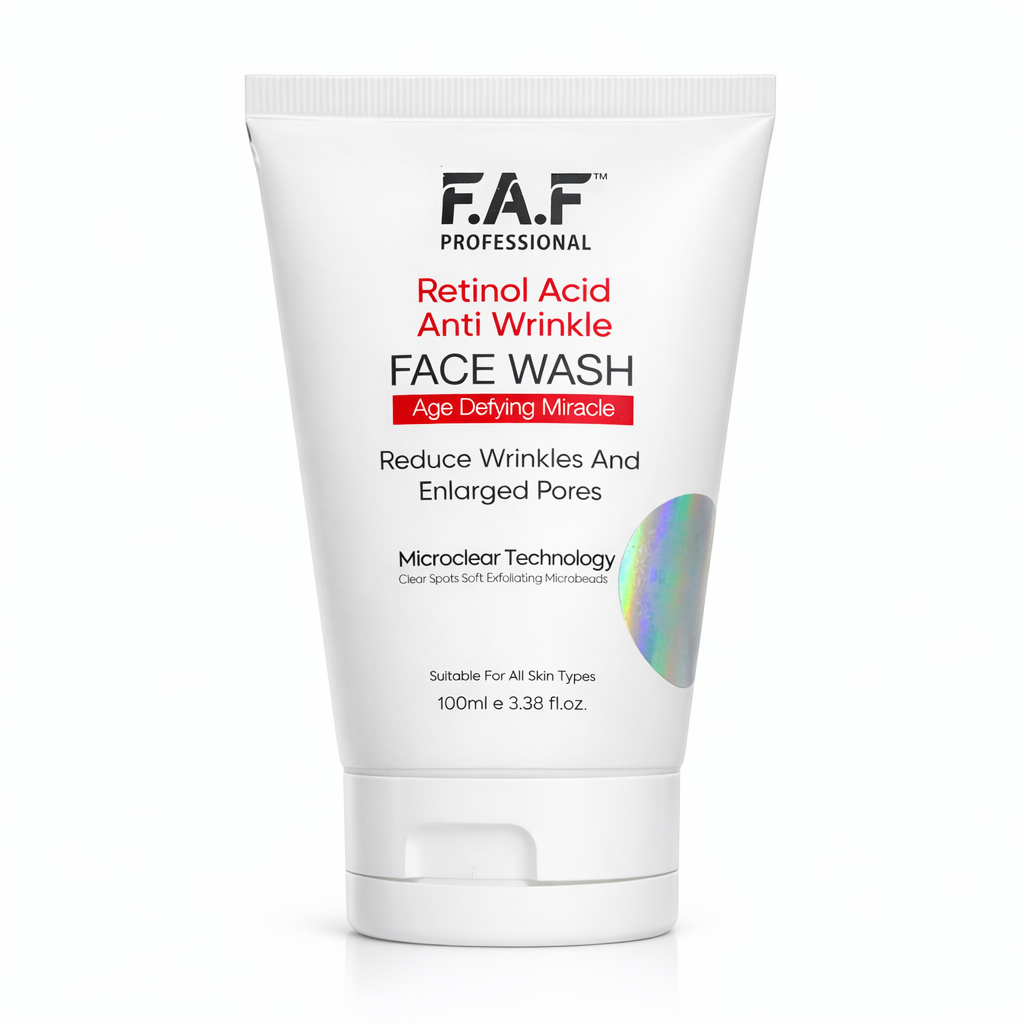 FAF Professional Retinol Acid Anti-Wrinkle Face Wash is a targeted daily cleanser formulated to support youthful, smoother-looking skin. Powered by Retinol Acid and Microclear Technology, it deeply cleanses pores, helps minimize the appearance of fine lines and wrinkles, and improves overall skin texture.