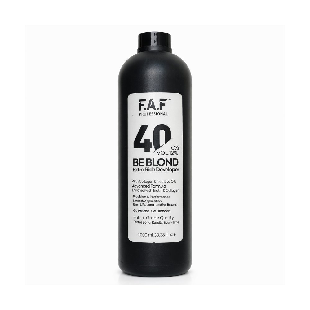 Unlock professional-level blonde perfection with F.A.F Professional Be Blond Extra Rich Developer 40 Volume (12%), expertly formulated for high-performance lightening and color processing. Designed for salon professionals and advanced users, this premium oxidizing developer delivers maximum lift, consistent results, and superior hair protection.
